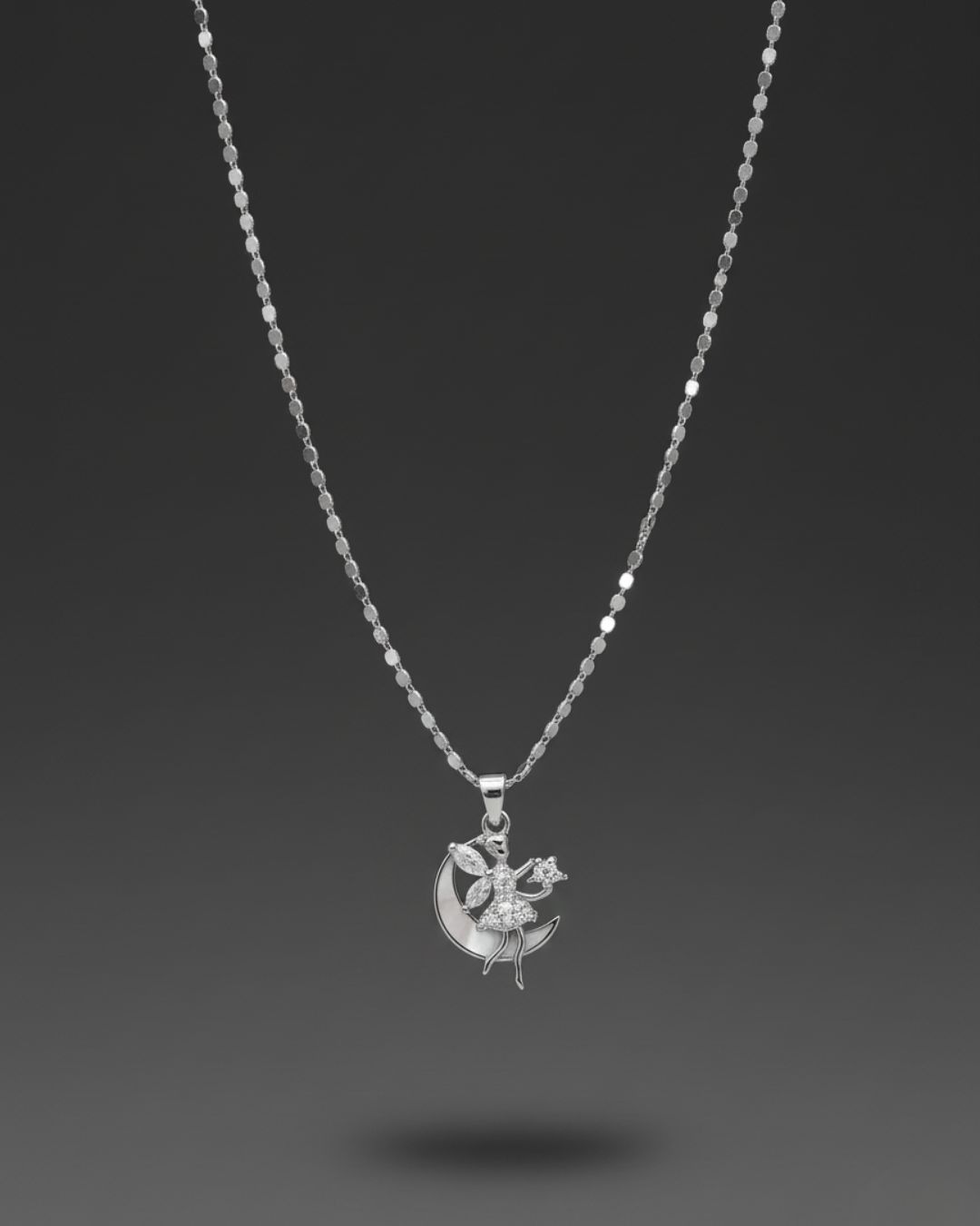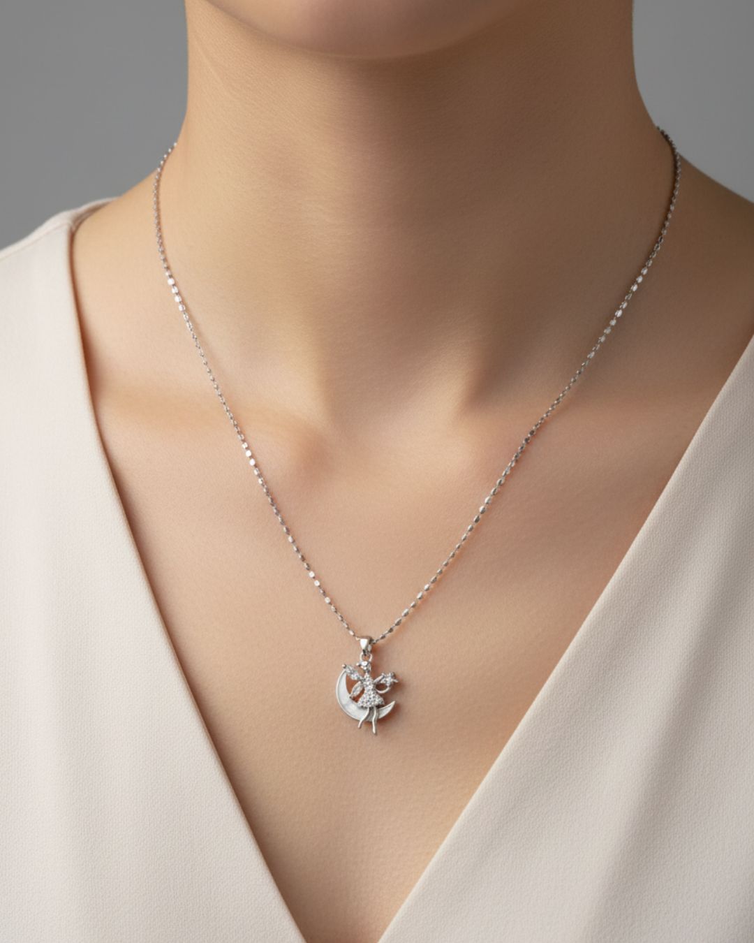 Gümüş ton zincir ve detaylarla modern bir stil oluşturur.